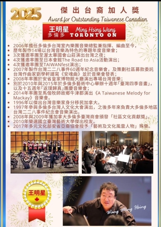 恭喜多倫多王明星老師獲得加拿大台灣同鄉會2025年傑出台裔加人獎,實至名歸! Post navigation 致敬 張克彥先生 (Keith Chang) 1944-2025 President’s Message